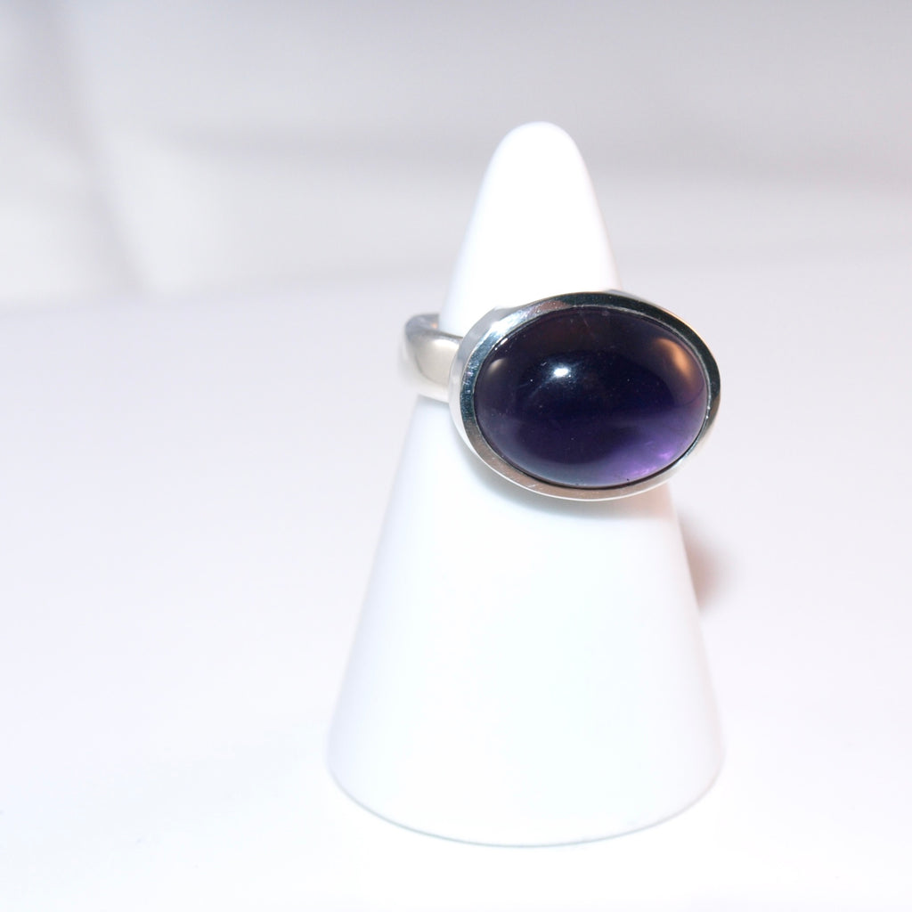 Ovaler Amethyst Ring – Handgefertigter Silberring in Größe 52