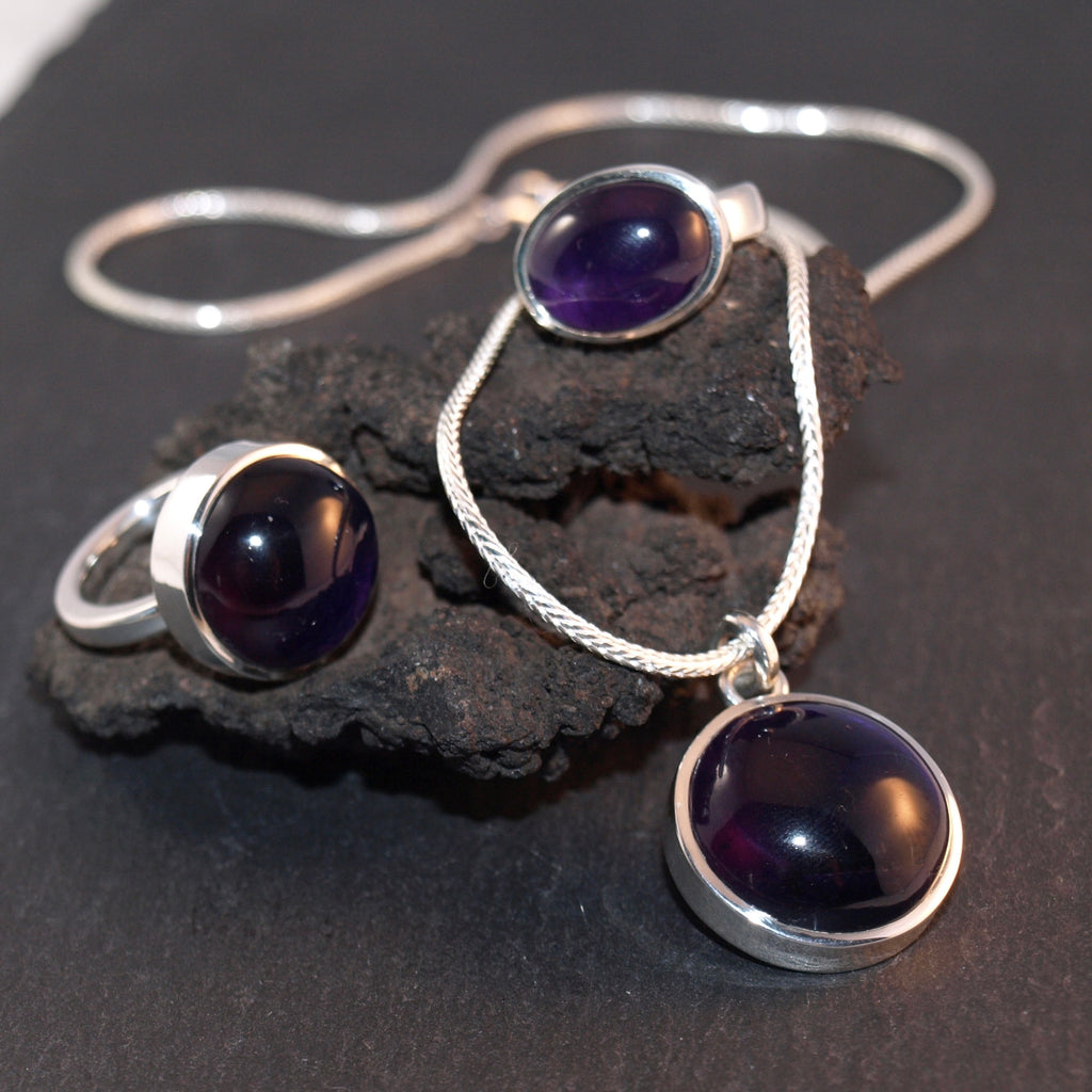Ein eleganter Begleiter mit Charakter: Dieser ovale Amethystring aus 925er Silber besticht durch seine harmonische Form und die faszinierende Tiefe seines violetten Steins. Der Amethyst Dunkelviolett– dezent und doch unverwechselbar.
